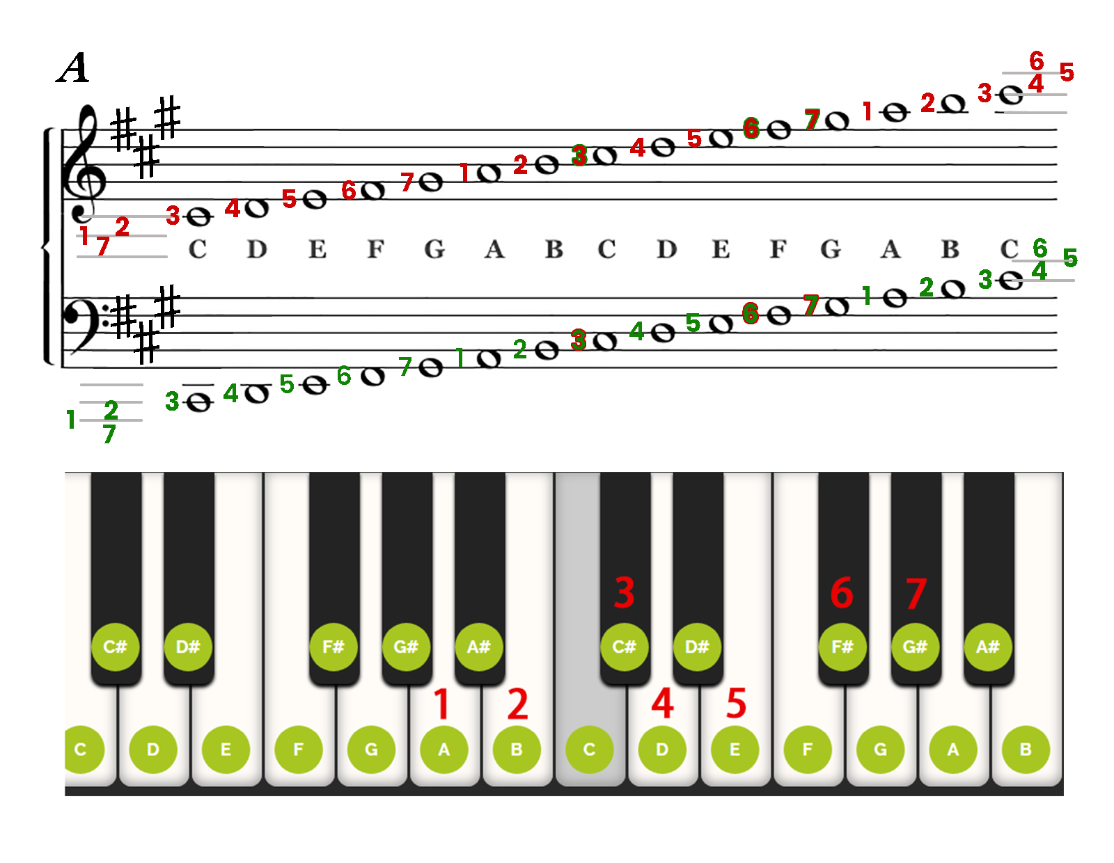 - 小3度(1个全音,1个半音):2-4;3-5;6-•1;