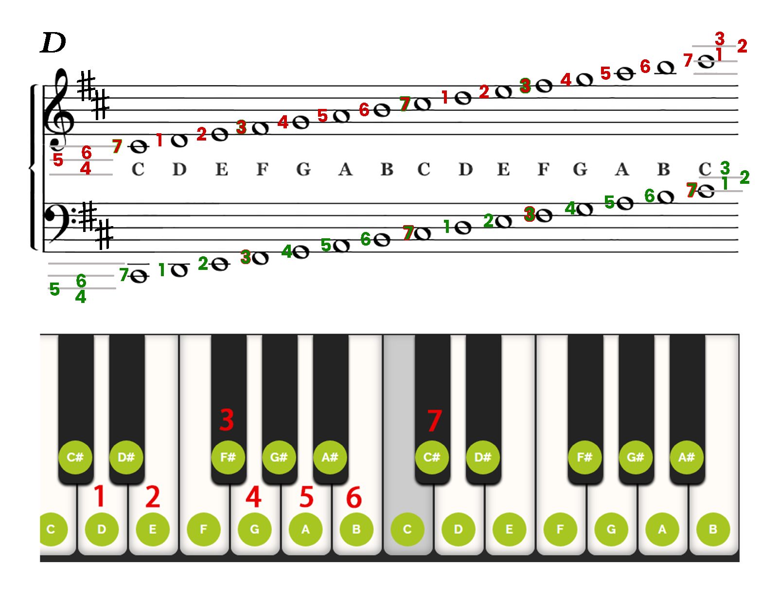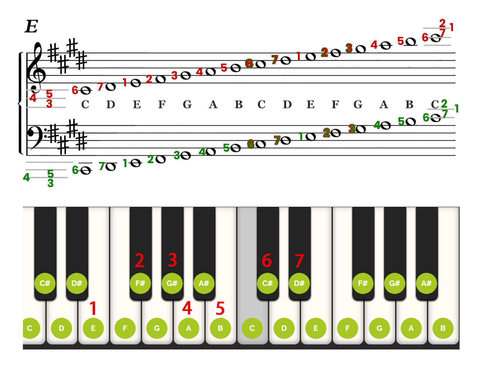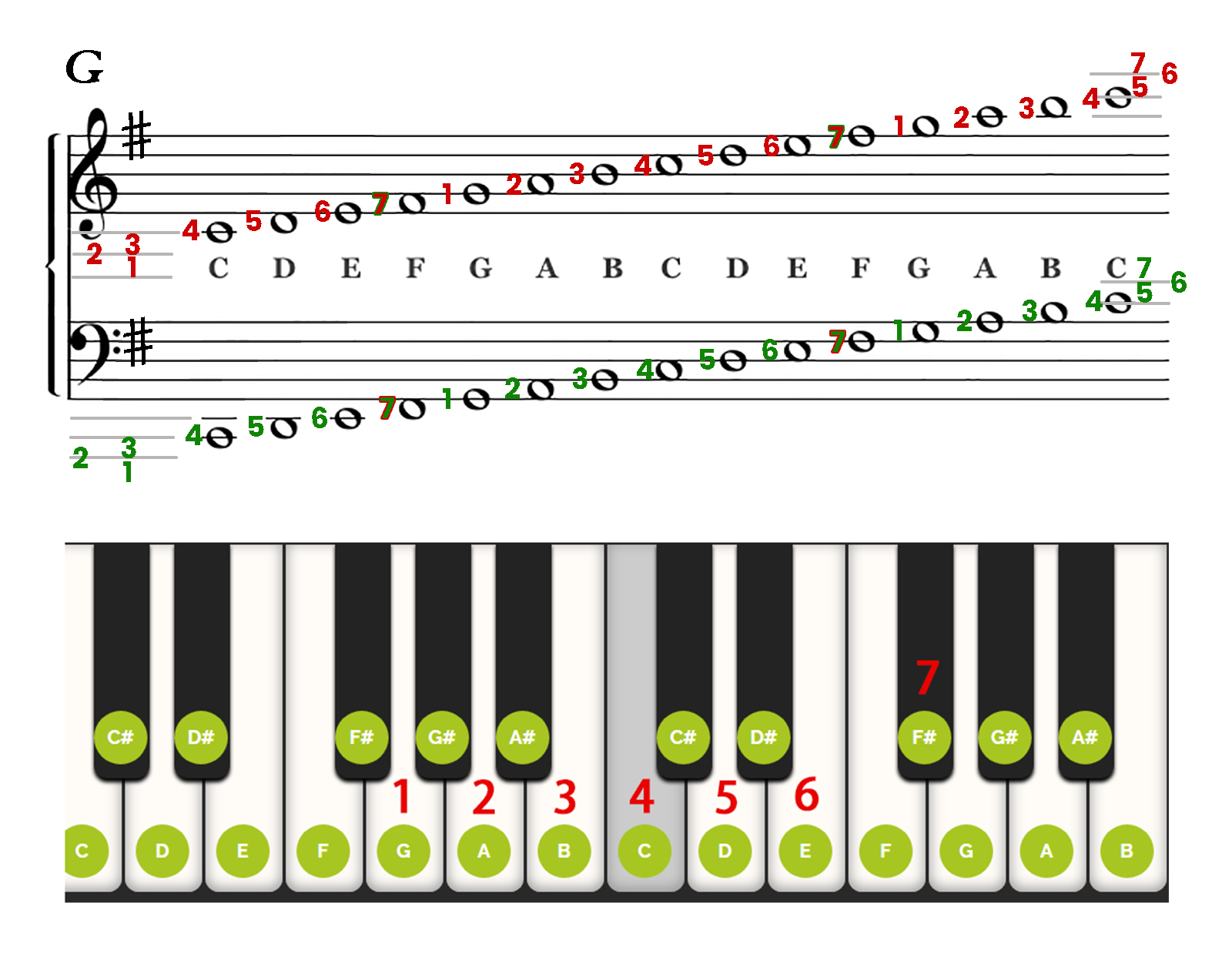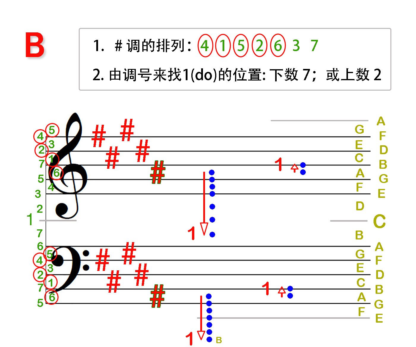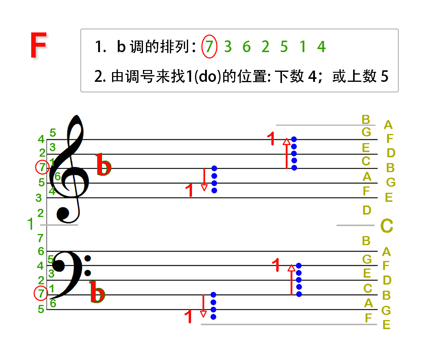 - 大3和弦 Major Triad(大3度+小3度):1-3-5;4-6-•1;5-7-•2;