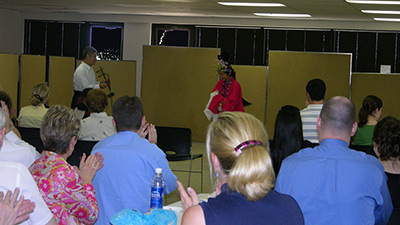 东方艺术团积极参与社区活动,配合各种需求,演出不同风格的节目,不仅受到了大家的好评, 也使整个艺术团显得格外活跃,富有生气。 6月16日, 东方艺术团应邀参加芝加哥郊区最大的报纸Daily Herald 组织的少数族裔文艺表演。在合唱团副团长赵玥的组织下,艺术团在短时间内,准备了歌舞节目。董晨空、高恩田、李春海、谢曙东、席与涵表演了男声小合唱“好汉歌”;古筝演奏家胡海纯演奏了扣人心弦的独奏曲“战台风”;江甜甜扮演了俊俏甜美的东北大姑娘,跳起了东北舞蹈; 在林吕的京胡伴奏下,梁艳和李春海领唱了的现代京剧选段;赵玥穿戴上京剧行头,一招一式的舞起了剑;艺术团艺术指导董晨空,在乡土气息浓郁的表演唱“瞧情郎”中,与阎伟蓉、张吉清、潘米佳等,亦歌亦舞,味道十足。这些节目从服装,到表演,都展现出东方的文化与风情,受到了热烈的欢迎,增进了主流社会对亚裔的更多了解,受到Daily Herald 报纸发行人Paddock先生的赞誉和当面致谢。