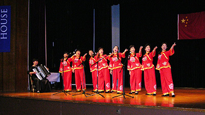 特别值得一提的是当天芝加哥东方艺术团表演的小合唱“上海滩”, 整齐的阵容令人瞩目。 参加小合唱的成员平均年龄都在60岁以上, 其中最大的关中峡老先生今年已有81岁。 但他们严谨的作风,精心的着装, 高昂的精神面貌,赢得了观众的心。他们用广东话演唱了这段脍炙人口的老歌:“浪奔, 浪流, 万里涛涛江水永不休…..”,地道的发音,和谐的歌声博得了全场一阵又一阵热烈的鼓掌。