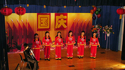 在这异国它乡的土地上, 愿所有的中国人, 团结在一起, 开拓我们的境界, 活跃我们的生活, 在拚搏与成功的道路上, 愿真挚的爱。无限的快乐。伴随着我们一帆风顺。