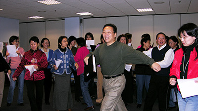 应这些老人们的要求, 芝加哥东方艺术团在南中国城建立了分团, 排练地点在南28街老人公寓. 环境舒适, 活动室宽敞明亮. 东方艺术团派出了著名歌唱家, 声乐教育家, 卫鸿老师作为该分团的指导老师. 卫老师不辞辛苦, 从很远的郊区赶来. 她不但教大家唱各种不同风格的新歌, 更用她严谨的教学方法, 为大家进行声乐训练. 老师教得认真, 学生们学得刻苦. 大家都感到受益匪浅. 目前分团已排出”跑马溜溜的山上”、”圣诞钟声”、”美丽草原我的家”等歌曲, 准备在艺术团秋季演出中一显身手. 老人们非常珍惜艺术团活动的机会, 两周一次的聚会, 大家都欢呼雀跃. 他们早早地来到现场, 大家都准备好茶水、点心、西瓜等,营造出一个温馨和谐的环境. 2-3个小时的歌唱时间, 大家总觉得过得太快, 每次都依依不舍的离开, 相互问候, 相互叮咛, 吩咐下次一定再见. 他们说“歌声使我们联系在一起, 象一个快乐的大家庭, 歌声让我们增加了无穷的乐趣”。他们也非常感谢卫鸿老师的辛劳, 感谢东方艺术团的成立.