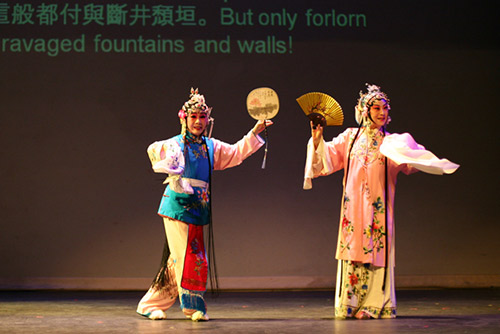 京剧团的节目最能体现中国传统文化的精髓。在今年9月份的戏曲专场演出上, 他们表演的节目,观众个个都叫好。首次在芝加哥地区出现演出场地不够, 老美老中观众把剧场挤的水泄不通的场面。连过道和台前的地上都坐满了观众。这次,她们为金秋皓月晚会送上了昆曲《牡丹亭》名段“游园”,阳春白雪,典雅绮丽,让在场的观众赞不绝口。身着古装,扮相美丽的夏兰石和李冬龄 ,长期合作,勤学苦练,名师指点,唱作俱佳。优美的唱腔, 娇媚的身段,独特的舞步道白,一举手,一投足,韵味无穷,不但美国朋友们叫好,连中国人也惊叹在芝加哥还能看到如此地道的戏曲。东方戏曲团不但准备了古典的经典片段, 也有现代京剧《杜鹃山》中的精彩对腔选段。副团长梁艳老旦亲自出马, 扮演杜妈妈。刘汉平医师扮演队长雷刚。人美音甜的梁艳和英俊潇洒的刘汉平,配合默契,大段唱腔,一气喝成,句句正腔, 字字韵味,获得了满堂彩。