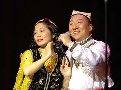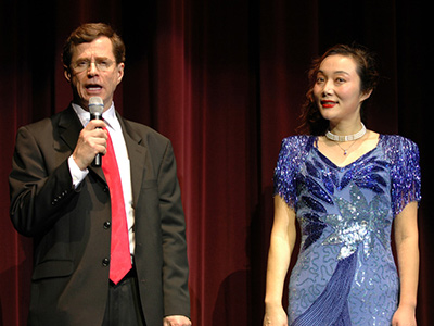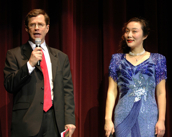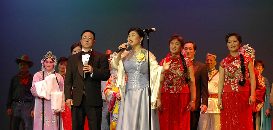 紧接着由享有盛名的男高音包敏满怀深情地演唱了民歌“三峡情”。这是一首高难度的男声独唱曲目。那金属般的磁性声音, 唱出了那一方山水,那一方风情,唱出了对母亲河—长江的眷恋。全场寂静的观众, 沉浸在优美的旋律中, 海外游子在感受对家乡的朦胧回忆。去年,中国著名歌唱家, 东方艺术团顾问吴碧霞聆听了他的独唱后,曾给予高度的评价。今天,他的一曲三峡情,唱得满堂生辉,掌声四起。