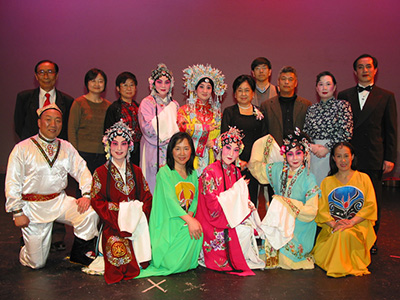 即将首次登台亮相的东方戏剧团, 算是最忙的一个团。他们这次演出的节目叫“行云流水”。受到节目时间的限制,他们特别设计了最能表达戏剧特点,观众最能接受的表演形式。 唱腔也是特别精彩, 每段都是精典之作。团员们靠着自身的硬功夫, 将京剧各个派别的特点表现得淋漓尽致。以往芝加哥的京剧演出,多为清唱,很少有全彩装上阵的。这次演出由于要求彩装上戏, 八个人的化妆和行头可真是难为了他们。 一个正常的戏曲演员的画彩上装, 演员自己画, 还需要另一个人帮助, 得花两三个小时的时间,精心描绘, 才会塑造出一个光彩照人的古装形象。团员们从现在起,就相互学习, 相互配合, 老的带年轻的, 年轻的帮老的, 反复学习上装, 认真练习画彩。 三月二十四日, 在芝加哥的舞台上, 将首次展现出中国国粹:京剧人物栩栩如生的形象。全套从中国制作、 正宗的戏服, 将会让所有的观众大开眼界,大饱眼福。