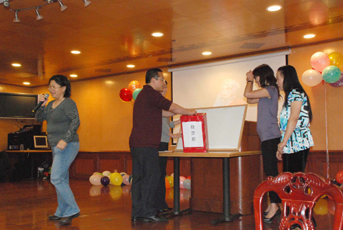 话剧团的部瑞志主持了当晚的活动。他风趣地招呼大家“全体起立,吃饱了,喝足了,投票了,运动了”,顿时迪斯科音乐响起,人们随着节拍跳了起来, 现场气氛变得格外热烈。