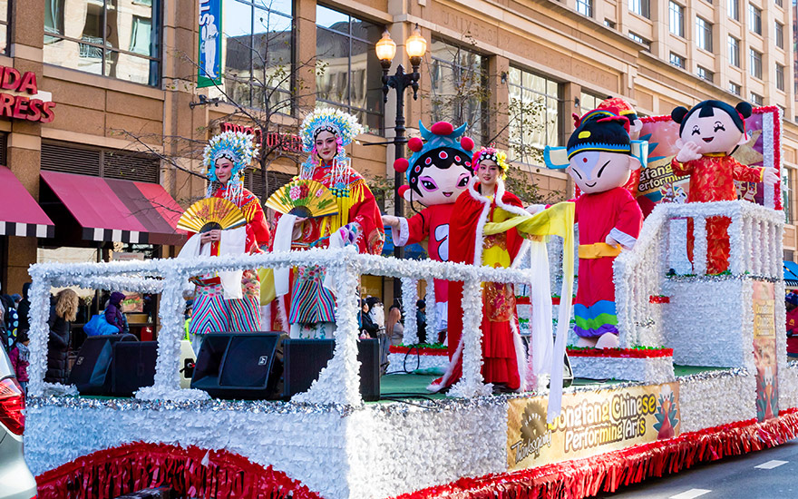 芝加哥东方艺术团参加11月23日的第84届感恩节大游行。游行在芝加哥市中心的State Street举行,有40余万市民在现场观看了这一活动。今年感恩节大游行共有100多个游行方阵总计5000多名表演者参加,其中包括以芝加哥东方艺术团、印城华夏文化中心舞龙和舞蹈队为代表的华人团体,参加大游行的华人艺术团体向民众展示带有中华元素的表演,迎来沿途观众的不断喝彩。