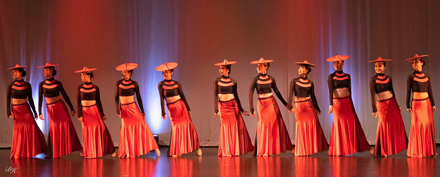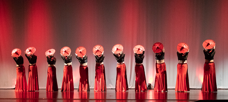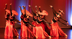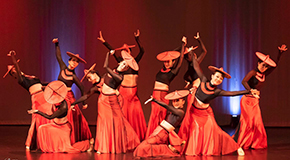 《山灵》融合了现代舞和傣族舞元素,肢体动作曼妙妖娆,音乐节奏变幻莫测,本身是一个很有挑战的舞蹈,而这样一支新老结合的队伍,更为舞蹈的教学工作增加了难度。舞蹈团周三班的指导老师陈美光,勇敢地接下了这个艰巨任务,开始耐心、细致地指导大家排练。最终凭借她丰富的教学经验和各位学员的刻苦排练,《山灵》节目在艺术团综艺晚会上大放异彩。随后,演出邀请纷至沓来,芝加哥交响音乐厅暖场,华联会春晚和今年5月的“清歌响舞晚”会等一系列晚会上,《山灵》一次次收获粉丝无数。因着演出的磨练,《山灵》被一点一点打造成精品,为后来的海桃杯比赛打下了良好的基础。