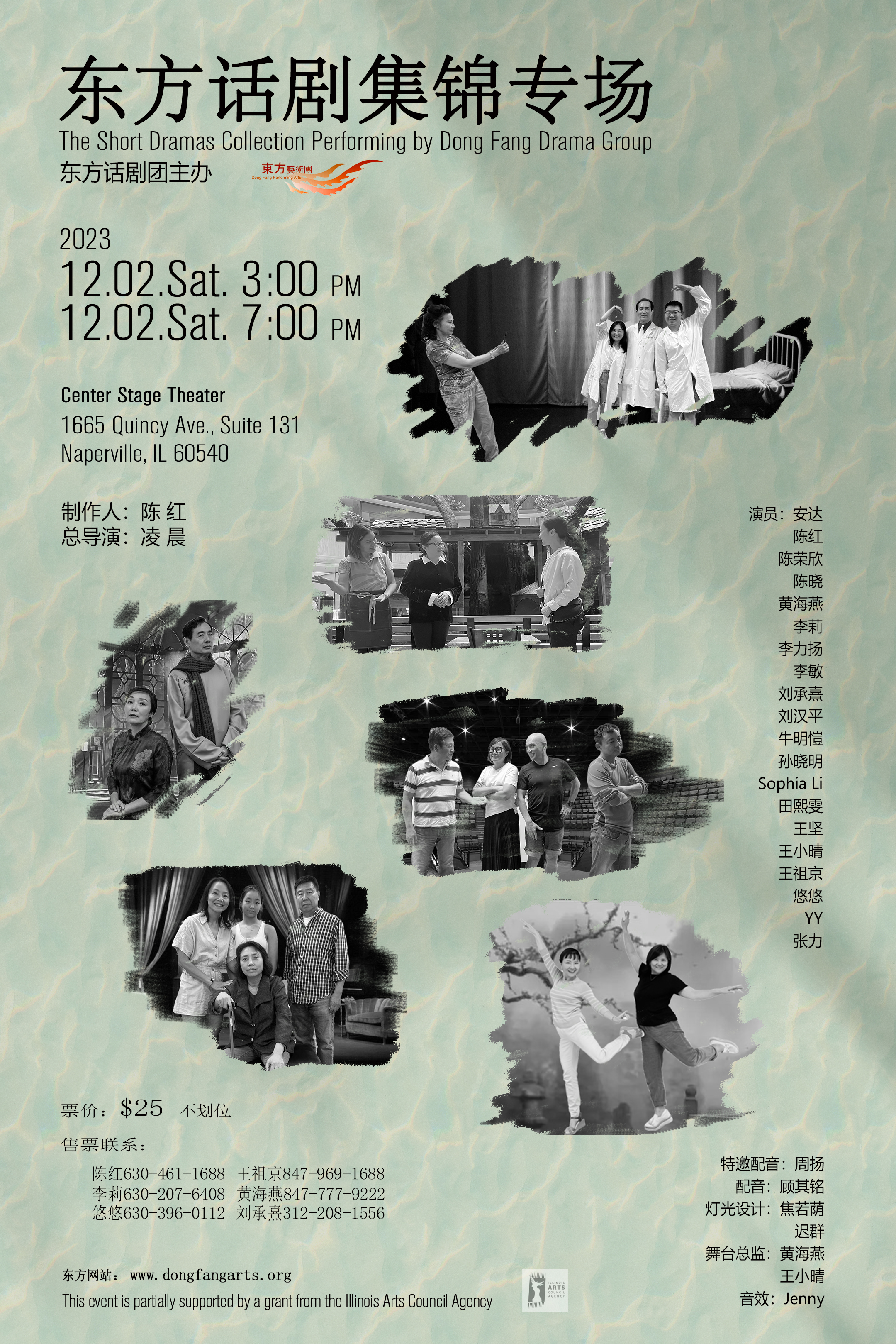 作为东方艺术团大家庭中的一员,东方话剧团成立于2006年。推出过许多高质量的话剧专场和短剧集锦演出,为本地热爱话剧的华人朋友带来了难得的机会。可以说,东方话剧团是芝加哥文艺舞台上散发着自己独特芬芳的一朵璀璨的鲜花,为丰富华人的艺术生活做出了重要贡献。话剧团将会陆续推出新剧目,以回报大家多年来对剧团的支持和厚爱。敬请期待!(照片由姚苑,Jimmy Wang,Ivy,老牛,索成林,陈皓,草田,章运和Linwei Fan提供)
